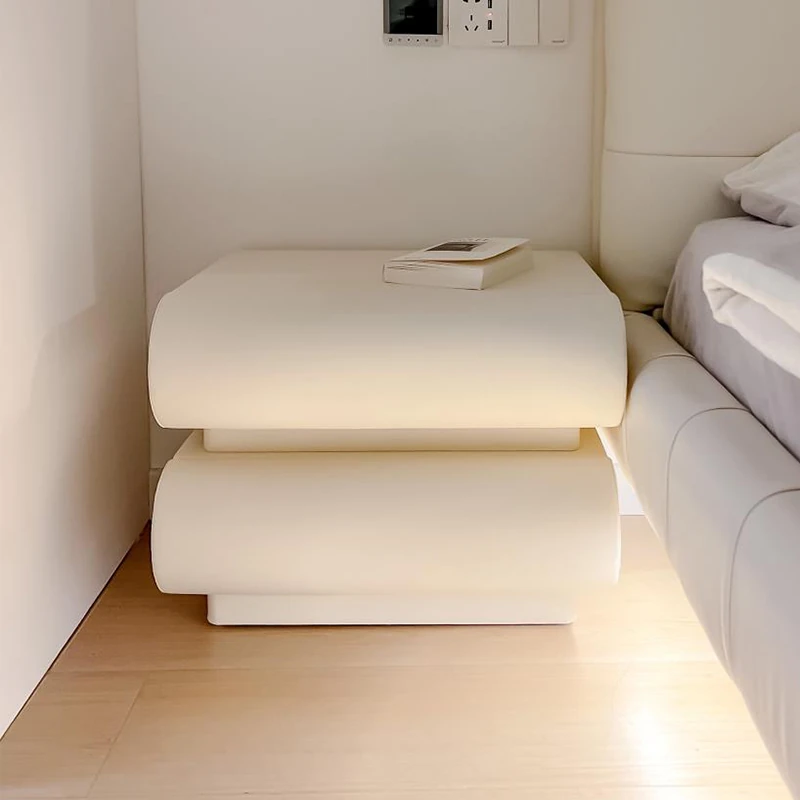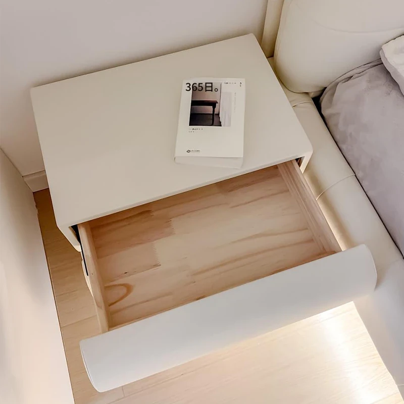 朴笙記の全木製軽奢ミニマリストスタイルの小型ベッドサイドテーブル - モダンでシンプルなデザイン、上質なレザー仕上げ、収納力抜群!おしゃれな寝室にぴったりの一品です。