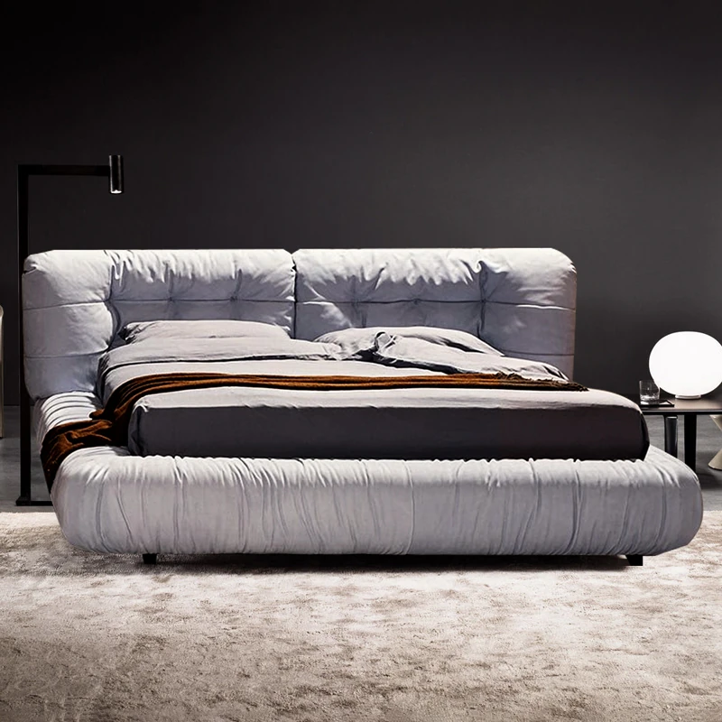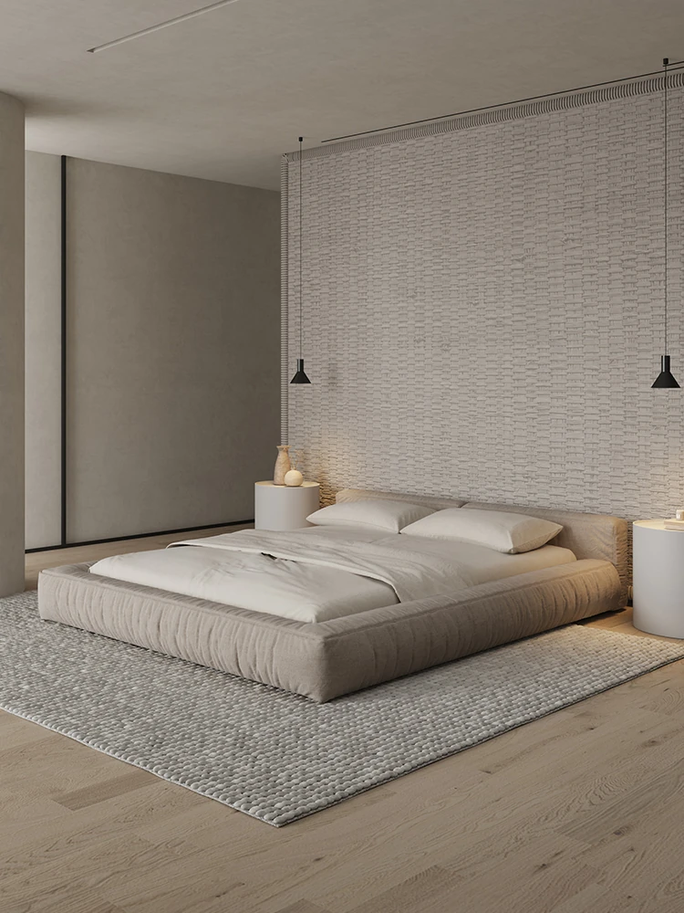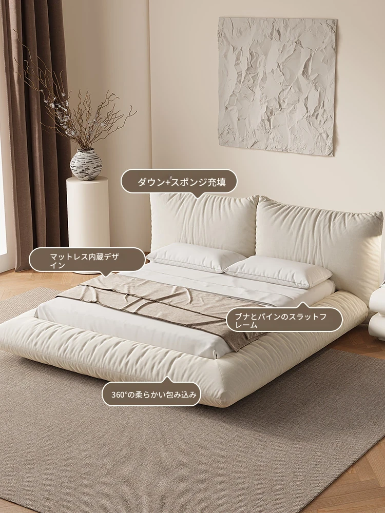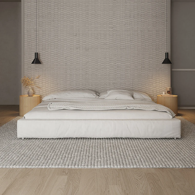 朴笙記のシワ加工豆腐ブロックベッド - 北欧風の軽奢布製、モダンでシンプルな畳スタイル、マット仕上げのフロアベッド、結婚生活にぴったりの別荘向けデザイン!