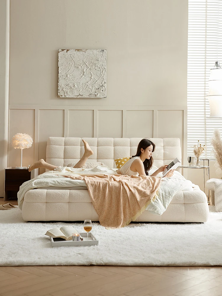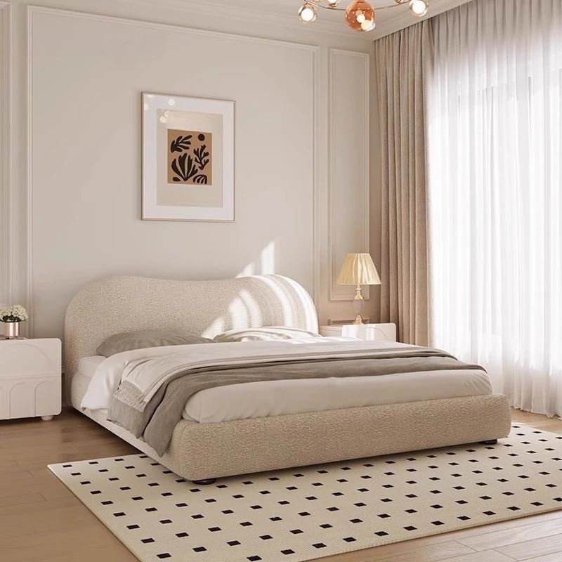 パクソン記 雲のような北欧スタイルの軽奢布製ベッド モダンでシンプルなラムスキンの婚礼用ベッド ヴィラ風クリームカラー主寝室にぴったり!あなたの夢の空間を演出します。