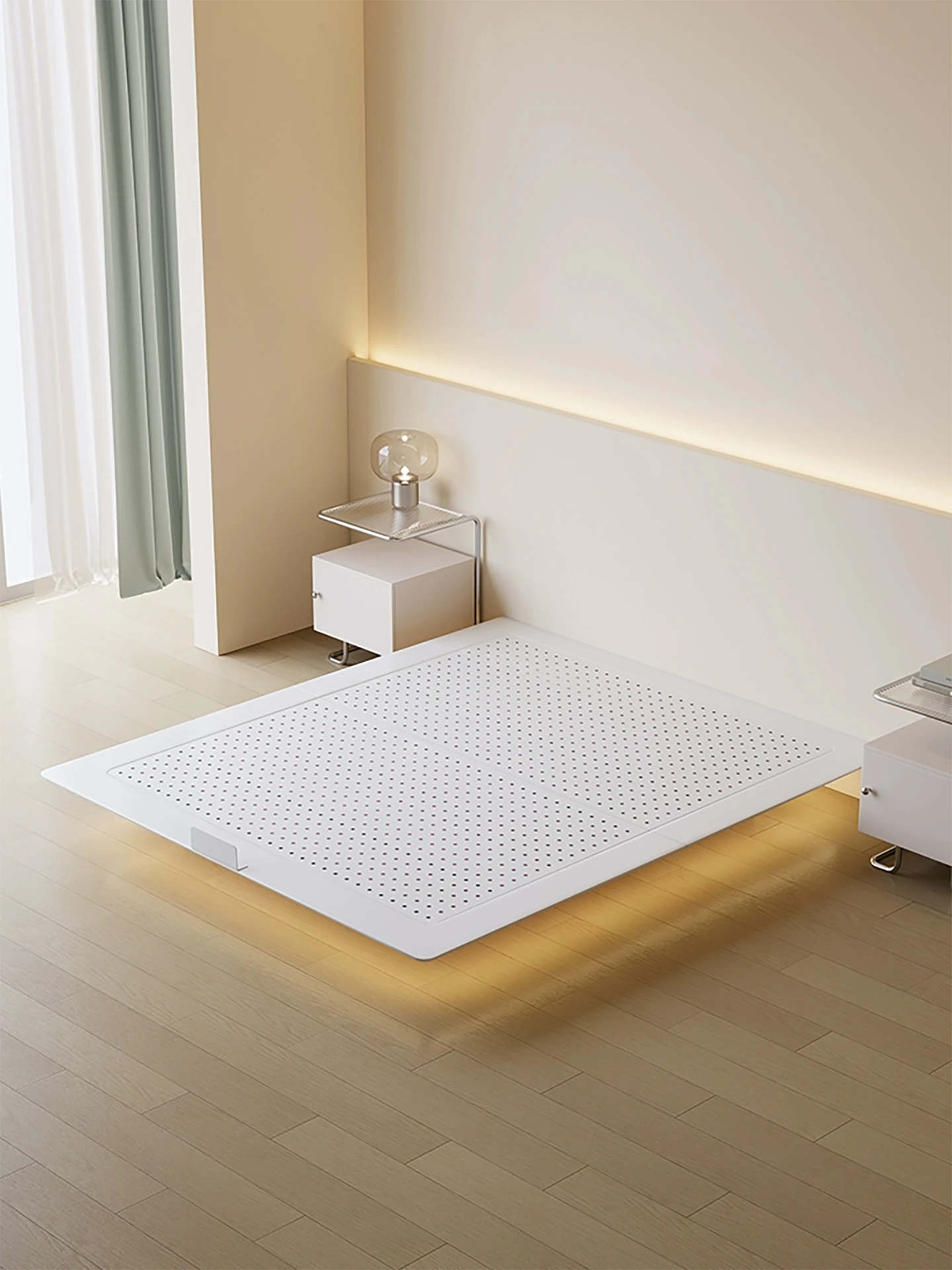 パクソン記 スマート電動ワッフル式ミニマリスト浮遊ベッド センサーライト付き モダンシンプルなダブルベッド 主寝室に最適!快適な睡眠空間を演出します!