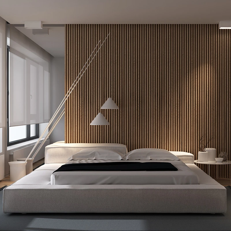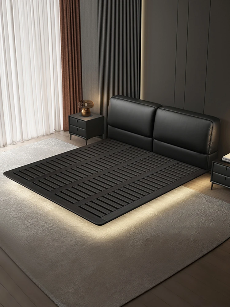 朴笙記の本革ベッド|現代的でシンプルなデザイン|ホワイトアッシュ材を使用|浮遊感のある主寝室用イタリアンミニマリスト結婚ベッド|省スペースで小型住宅にも最適!